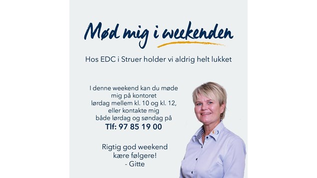Vi er altid til at træffe - også i weekenderne!