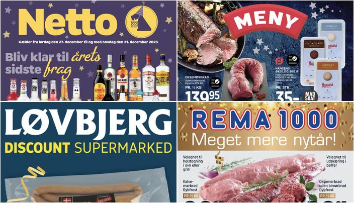 Rema 1000 tilbyder kalvemørbrad dybfrost, velegnet til helstegning, til 99,95 kr. pr. ½ kg. Tilbuddet gælder fra lørdag den 27. december til onsdag den 31. december.