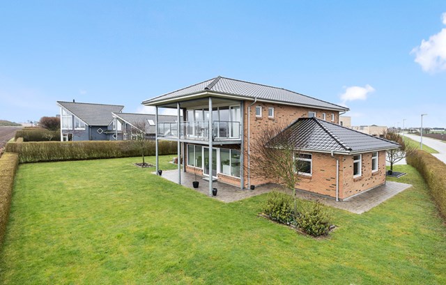 Der er tre unikke kendetegn ved denne villa: Symmetri, lys og rummelighed... Fuldmuret, topisoleret og bygget i en spændende og praktisk afbalanceret arkitektur. Italienske højstyrkeklinker, hvidolierede bøgetrægulve og vandskurede vægge giver et stilfuldt, moderne, praktisk og indbydende indtryk.